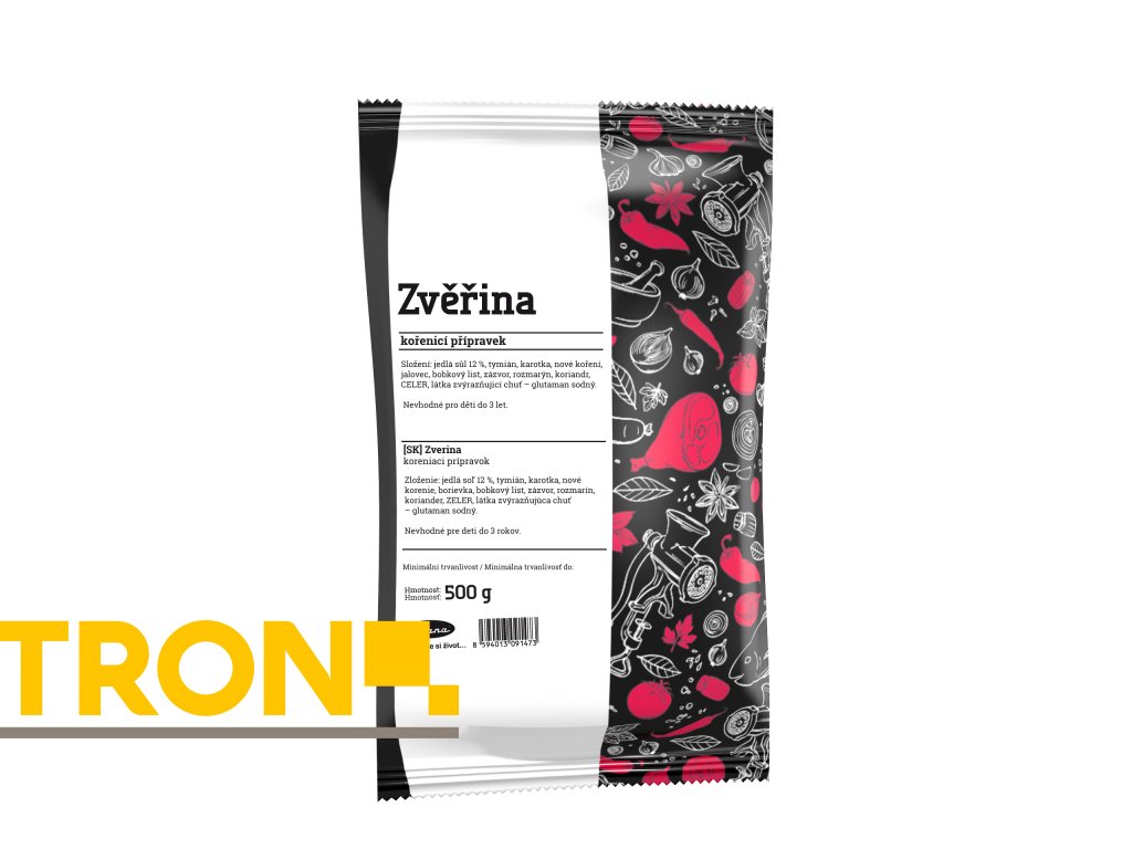 Složení: jedlá sůl 12%, tymián, cibule, rozmarýn, koriandr, zázvor, pepř černý, nové koření, bobkový list, paprika sladká, jalovec, pastinák, karotka, CELER.